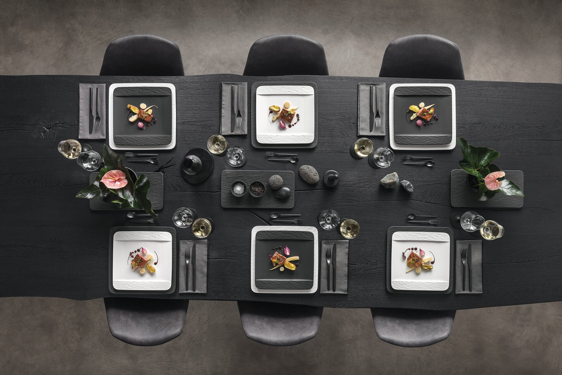Ein wahres Spiegelbild der Natur: Das minimalistische, ausdrucksstarke Design von The Rock ist natürlichen Schiefergesteinsformen nachempfunden und wird optisch und haptisch in höchst anspruchsvollen Verfahren auf feinstes Premium Porcelain übertragen.