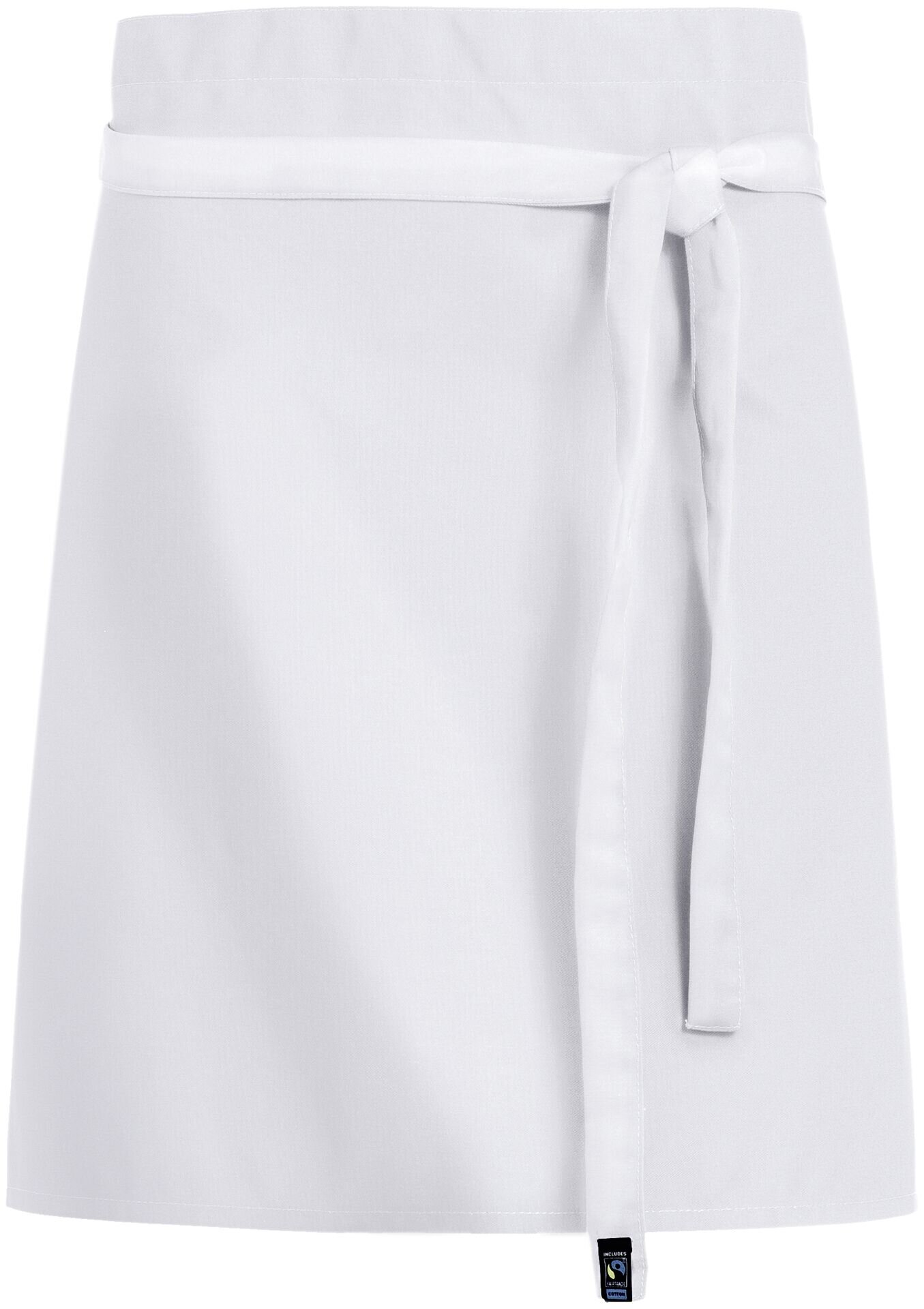 In 9 trendigen Farben Schürze mit farblich passendem Stoffband in trendigen Farben. Material: 65% Polyester/ 35% Baumwolle, 215g/m². Waschbar bis 95 C°. Abmessungen LxB in cm: 45x90. Die gesamte Baumwolle ist Fairtrade zertifiziert. Somit auch Produktion im Fairtrade auditierten Betrieb. Farbe: weiß