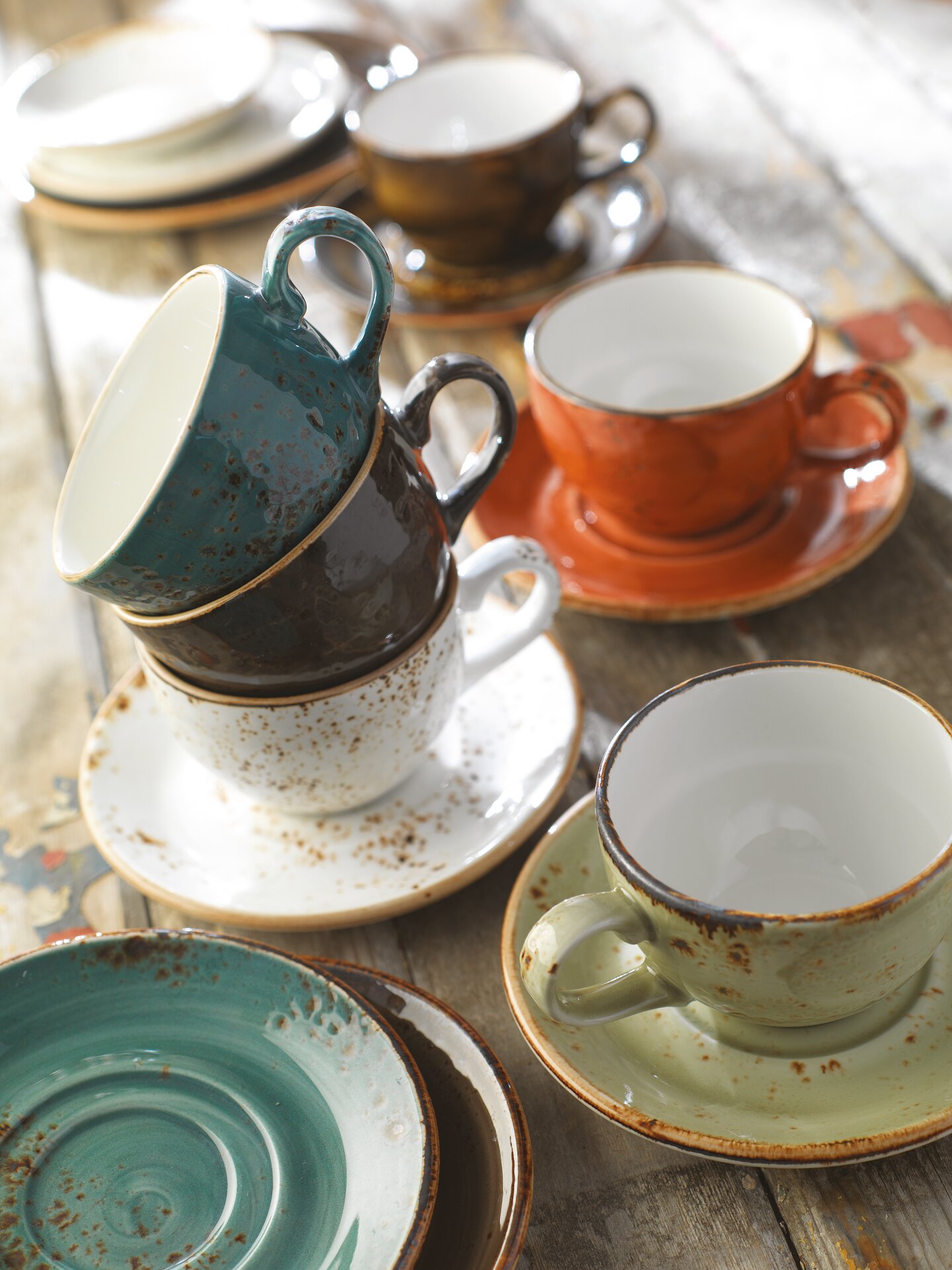 Craft ist inspiriert von handgearbeiteter, einfacher rustikaler Keramik, die von Generationen von Töpfern über Jahrhunderte hergestellt wurden. Das Sortiment verkörpert die Schönheit reicher, glänzender Glasuren, die von Hand aufgetragen werden, und zelebriert Zufallseffekte und Reaktionen, die auf natürliche Weise im Brennofen entstehen. Die edelsteinartigen Glasuren in Verbindung mit einfachen Formen und Formen erzeugen ein einzigartiges und individuelles Erscheinungsbild und verleihen Craft eine rustikale „Lebensfreude".
