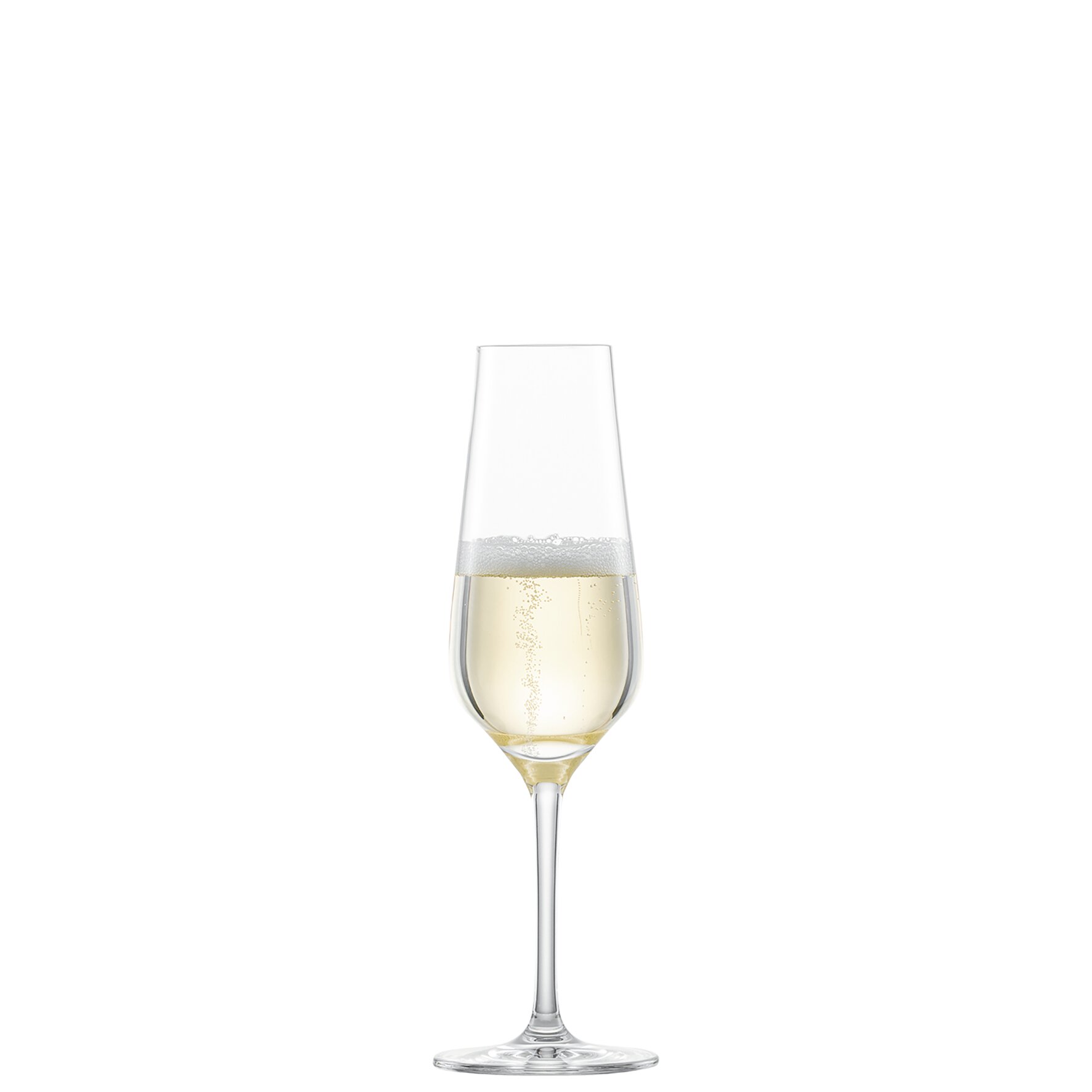 › beim Champagner- / Sektglas ist der lange Stiel und der speziell designte Kamin des Glases, der eine wunderbar elegante Perllage ermöglicht