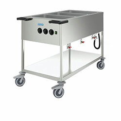 Bain-Marie Wagen, 2 x GN 1/1, Bedienleiste lange Seite, 2 Becken, offener Unterbau