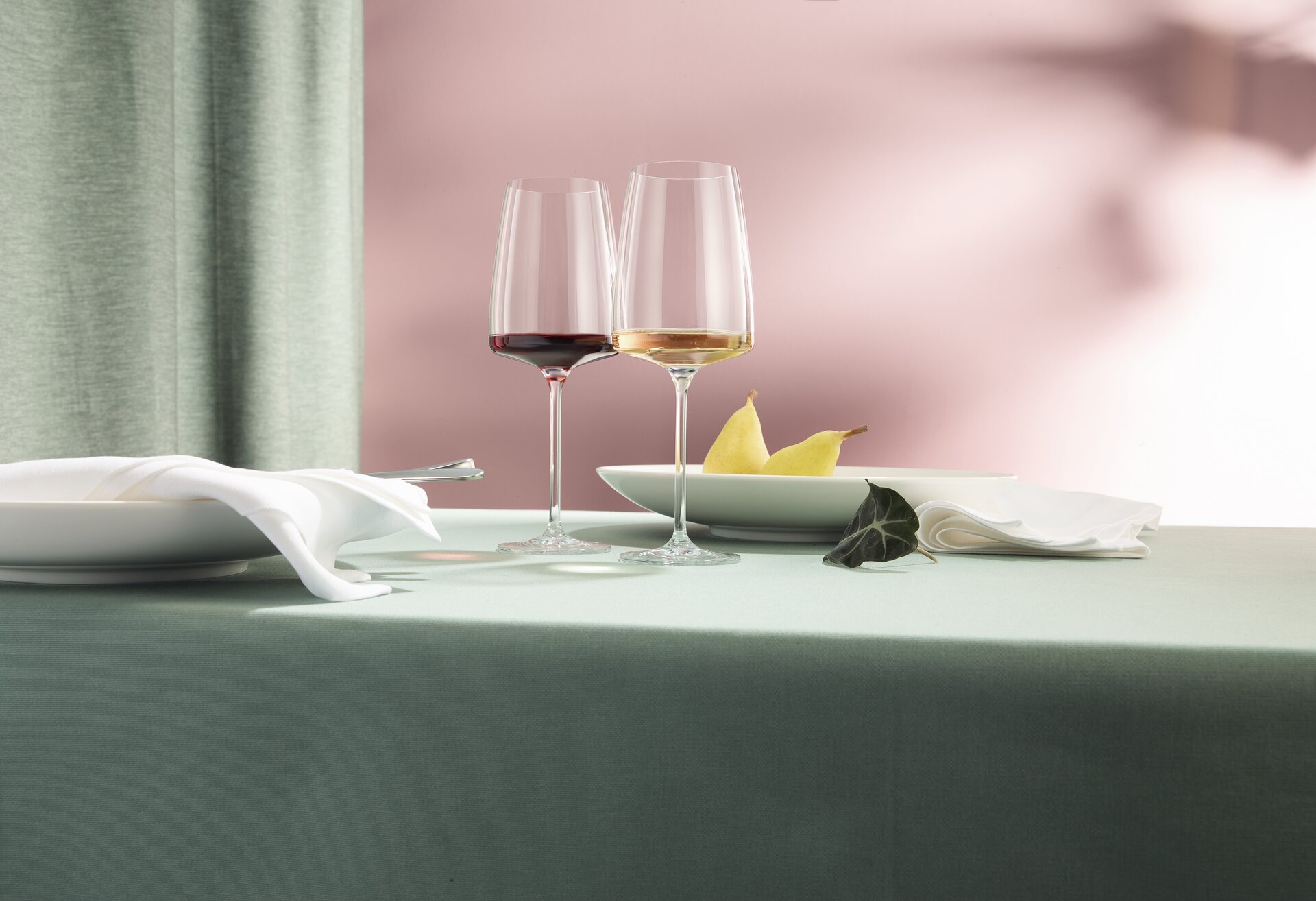 Leichte Weine wie Müller-Thurgau und frischer Riesling oder ein Portugieser fühlen sich in SENSA LEICHT & FRISCH mit schmalem Kamin am wohlsten. SENSA KRAFTVOLL & WÜRZIG ist mit seiner ausladenden Form ein perfekter Begleiter für kräftige Weine mit viel Tannin oder Barique-Noten. Ganz unkompliziert bildet SENSA mit nur vier Glasgrößen für leichte-frische, fruchtig-feine, samtig-üppige oder kraftvollwürzige Weine die wichtigsten Weine der Welt ab. Ein weiteres Glas für Sekt und Champagner rundet die Kollektion ab.